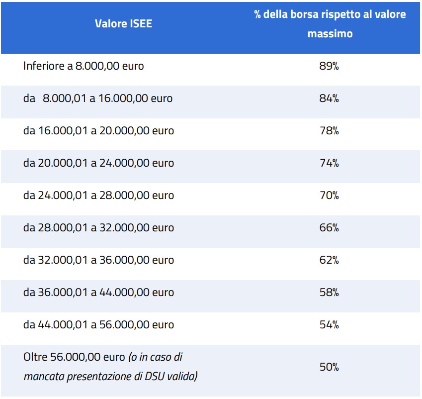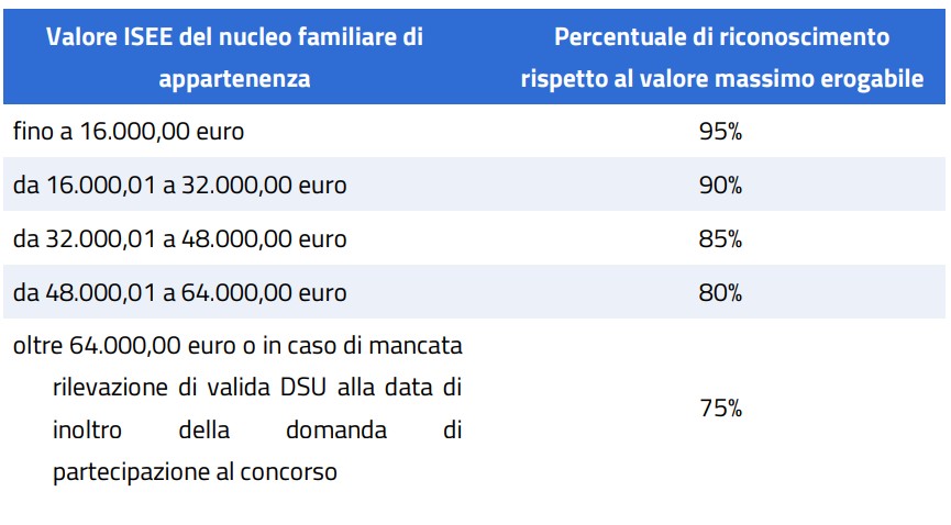 I richiedenti dovranno anche avere presentato l’ISEE 2025. Le graduatorie, infatti, sono predisposte sommando il punteggio del voto di laurea con quello relativo al punteggio corrispondente alla classe di ISEE secondo la ripartizione indicata nel bando.