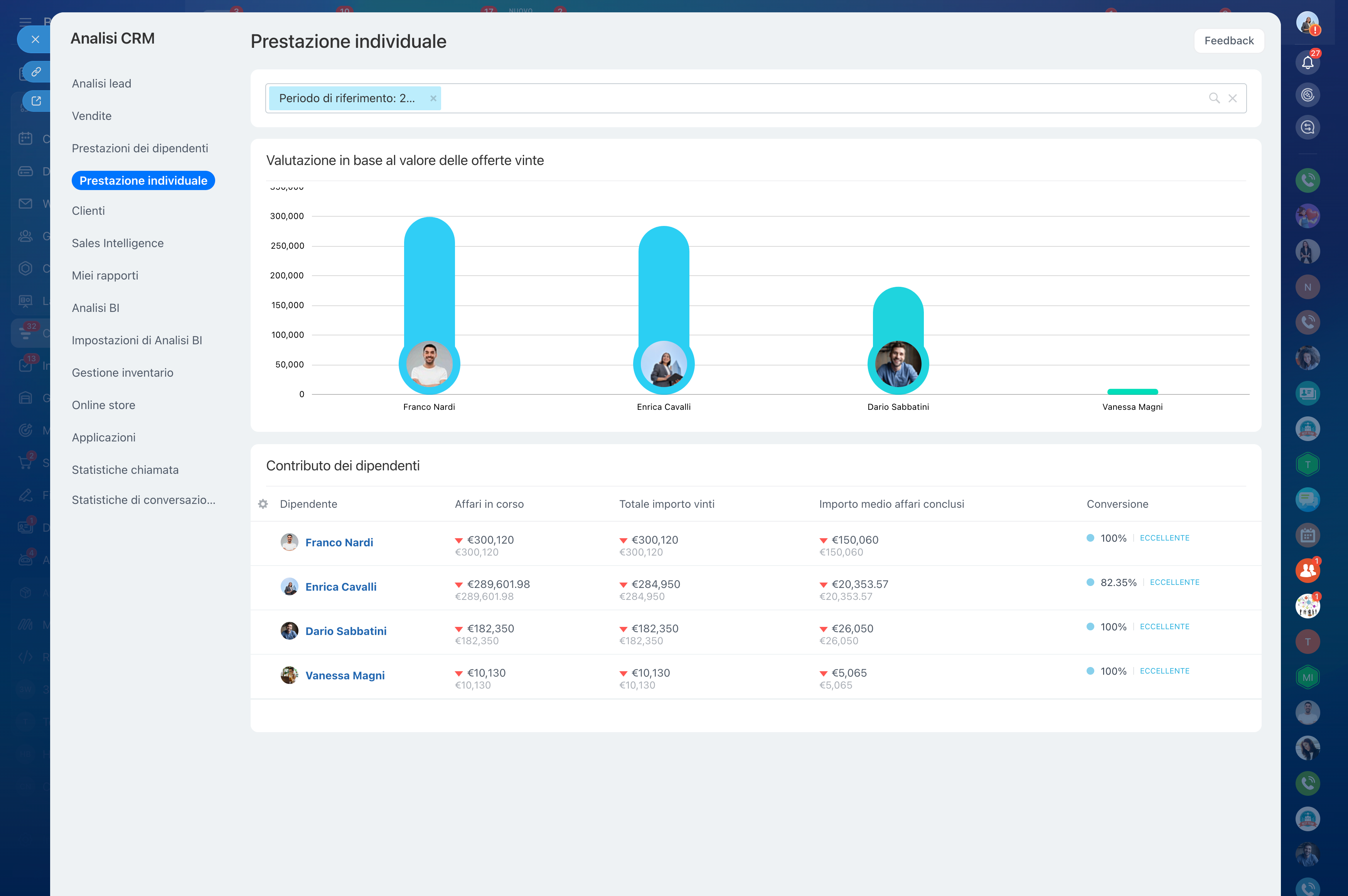 Per misurare l’efficacia delle strategie di segmentazione e l’andamento del portafoglio clienti, è essenziale monitorare i Key Performance Indicators (KPI). L’analisi del CRM serve a monitorare i parametri delle vendite, permettendo di valutarne andamento, performance individuale e del team commerciale e impatto delle campagne di marketing.