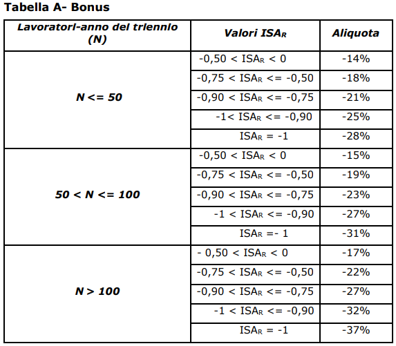 L’INAIL ha, dunque, approvato la nuova tabella A “Bonus” prevista dall’articolo 20, comma 5, delle Modalità di applicazione delle tariffe approvate con decreto interministeriale 27 febbraio 2019 (art. 20, comma 5) così come la modifica dell’aliquota di oscillazione (commi 8 e 9 del medesimo articolo).