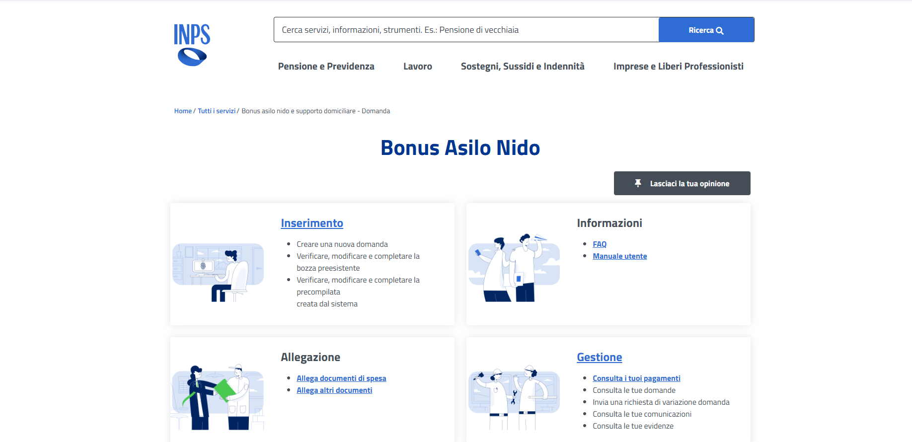 Accedendo alla domanda presentata, nella sezione Allegazione è possibile inserire i documenti che attestano l’avvenuto pagamento delle rette e, in questo modo, sbloccare l’erogazione effettiva del bonus asilo nido da parte dell’INPS.