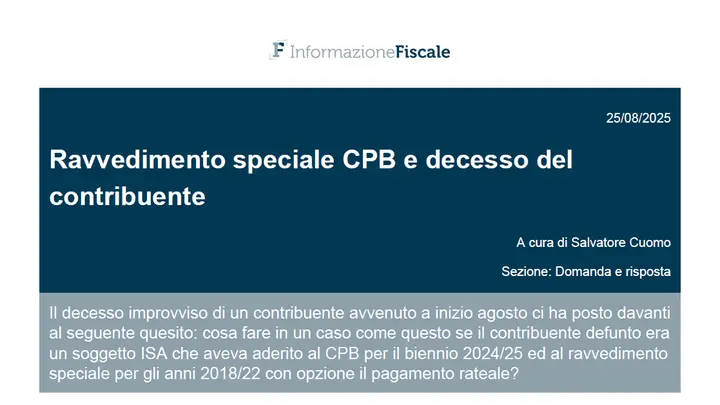 Articolo originale pubblicato su Informazione Fiscale qui: Ravvedimento speciale CPB e decesso del contribuente