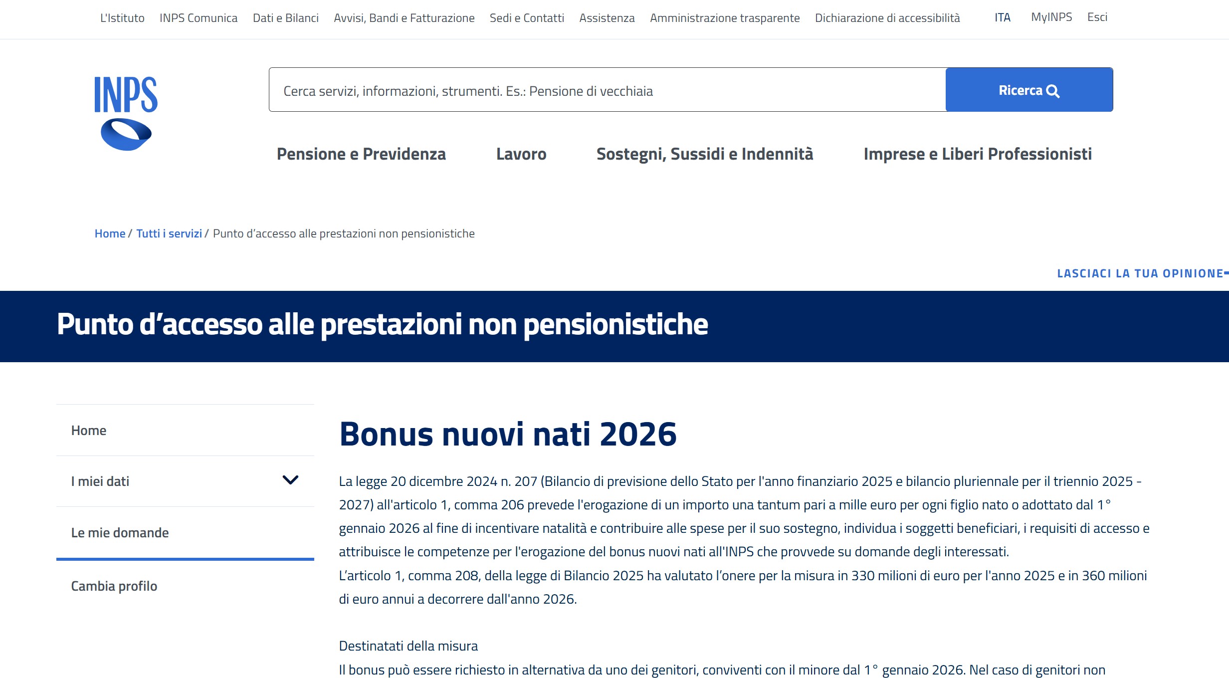 Sul sito dell’INPS si può inviare la domanda per il bonus nuovi nati 2026. Le istruzioni per ottenere il contributo