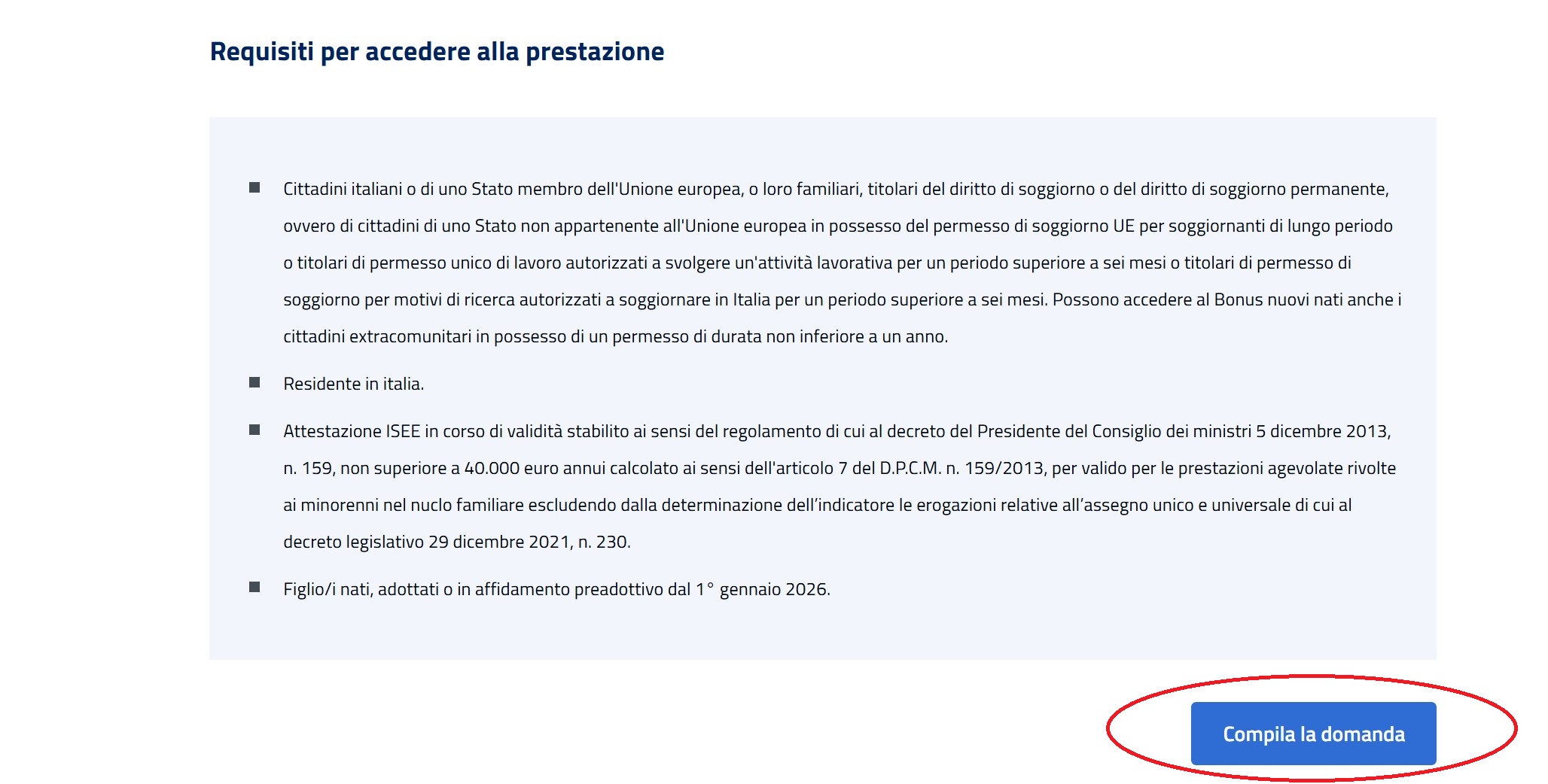 Scorrendo in basso si deve quindi cliccare su “Compila la domanda”.