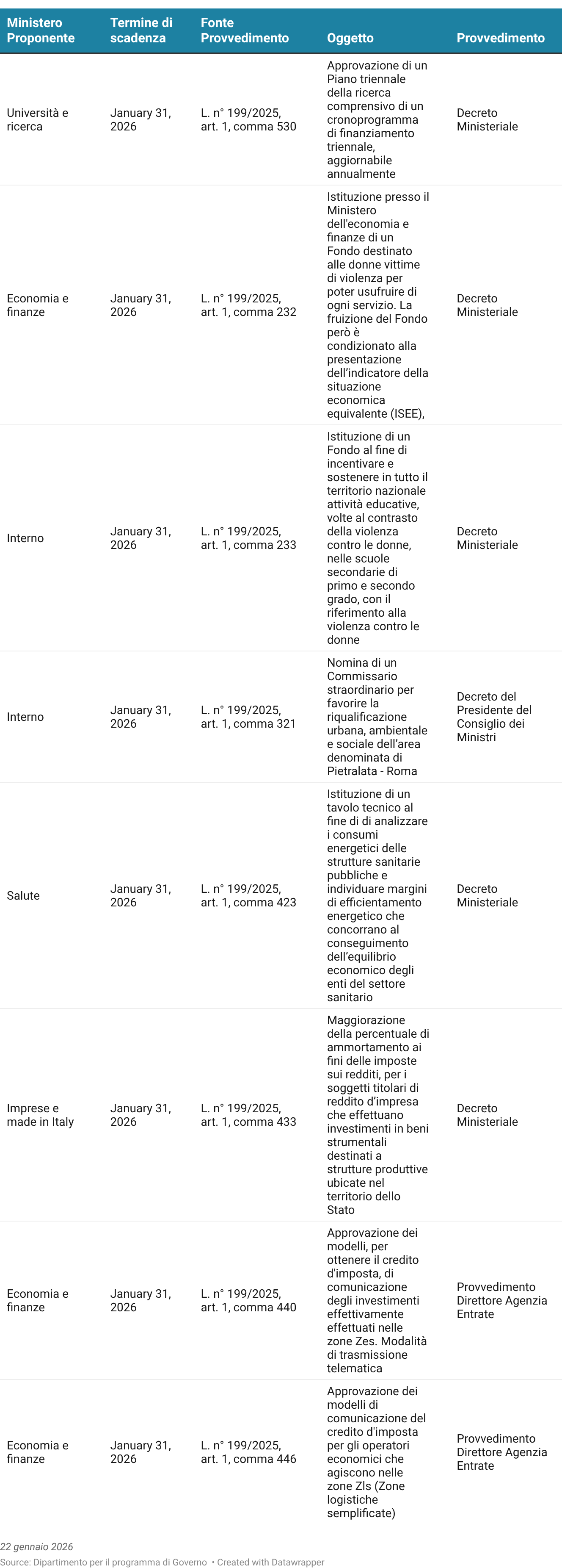 Dal perimetro delle imprese a quello delle prestazioni sociali, il condizionale, però, resta d’obbligo. Le date indicate dalle norme spesso non vengono rispettate: lo scorso anno su 16 decreti da adottare nel primo mese, solo tre, di cui le modalità attuative dei bonus ZES e ZLS, hanno visto la luce nei tempi.