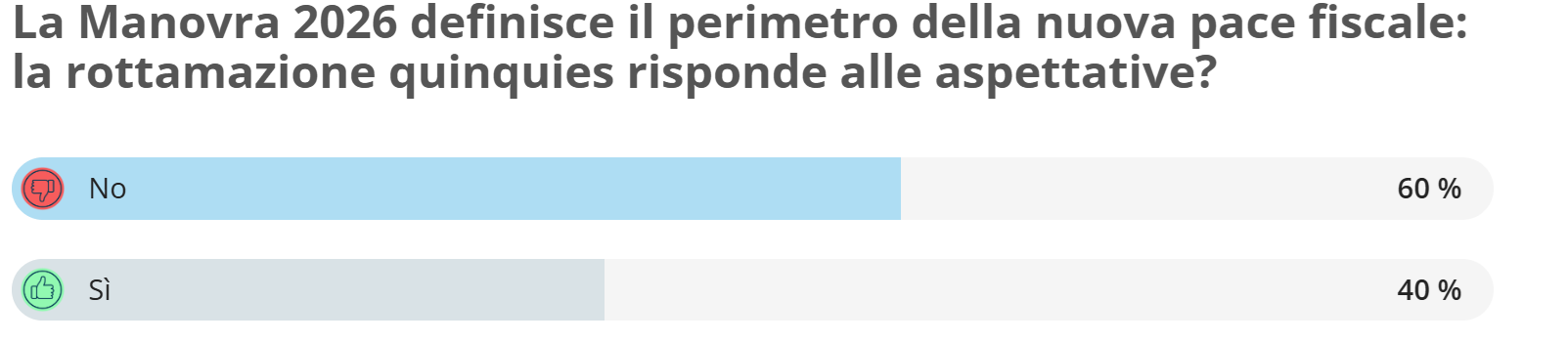 Il risultato, però, non convince: il 60 per cento dei lettori e delle lettrici che hanno partecipato al sondaggio sul tema, infatti, bocciano l’impianto di regole alla base della rottamazione quinquies, percentuale che sale al 76 per cento tra coloro che hanno espresso la loro opinione (un numero più ristretto) tramite Linkedin.