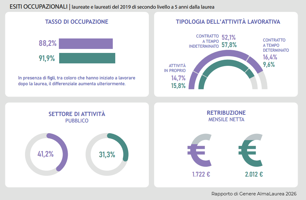 A tracciarla è il Rapporto di Genere Almalaurea 2026 che, a dispetto di risultati brillanti delle ragazze negli studi, registra una differenza tra gli stipendi mensili di quasi 300 euro, confermando la necessità di avere buste paga e carriere più trasparenti. Punto centrale della direttiva UE 2023/970 che gli Stati membri stanno recependo in questi mesi.